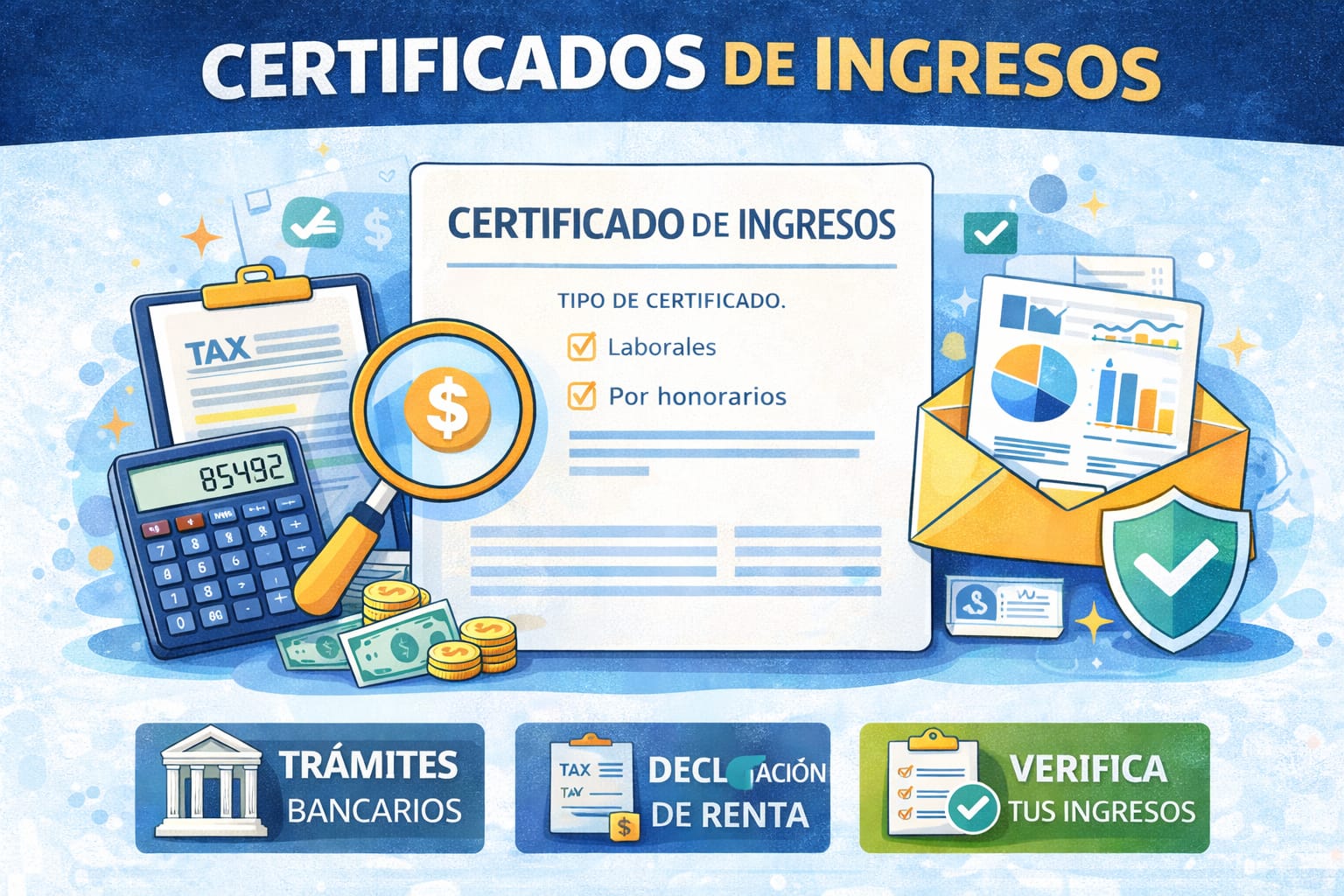 El certificado de ingresos acredita información financiera para terceros. No tiene naturaleza tributaria ni reemplaza las obligaciones fiscales formales del contribuyente.